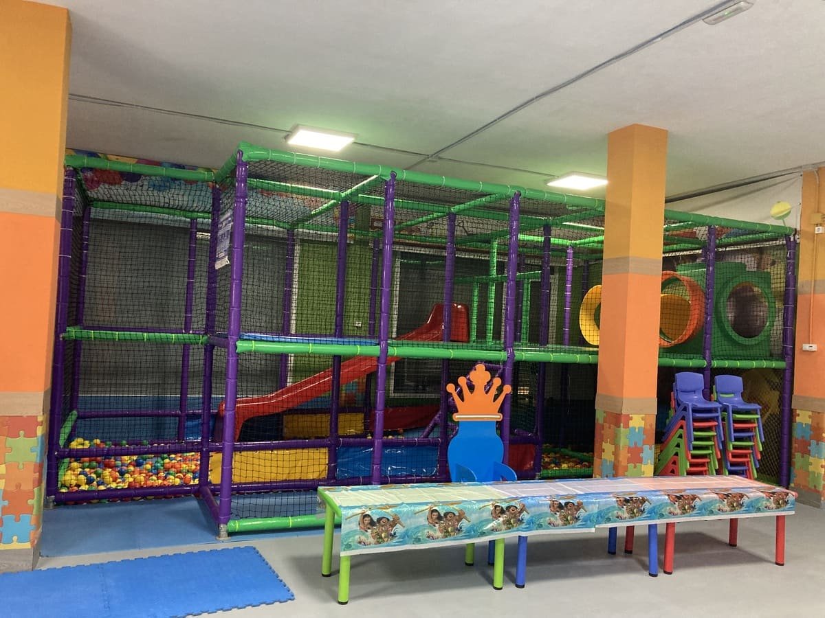 Un lugar estupendo para pasar tiempo con la familia y los amigos e ideal para fiestas infantiles. Tiene capacidad para 50 personas. Podrá disfrutar de las instalaciones interiores y de una gran terraza donde los niños pueden jugar sin peligro. Cerca de un parque infantil público donde se puede ampliar la zona de juegos con columpios, un campo de fútbol, zonas verdes… A los niños les encantará jugar en el Castillo Hinchable con Tobogán y en el Parque de Bolas, mientras que los adultos podrán disfrutar de su propia terraza con toda tranquilidad.