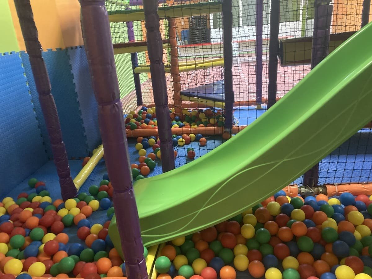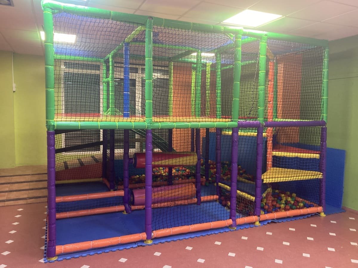 - Parque de bolas, con 2 plantas y tobogán