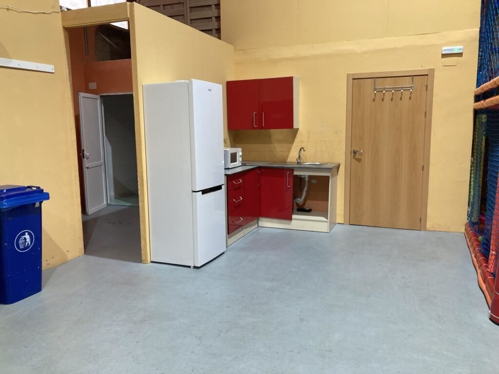 En el local podrás encontrar lo que necesitas para tu evento; sillas, mesas, equipo de sonido, neveras… Dispone de 2 Aseos. Tenemos instalado en el interior 1 Gran castillo hinchable con tobogán, y 1 parque de bolas con 2 plantas y tobogán, para que disfruten los niños. Los adultos pueden tener un evento tranquilo con amigos, familiares e invitados. Ofrecemos un aforo para eventos de 50 personas, incluyendo niños y adultos.